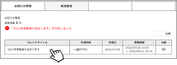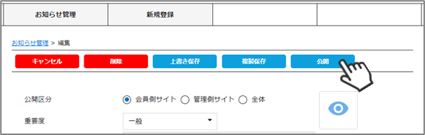 - 「複製保存」作成済みのお知らせを複製することができます。
