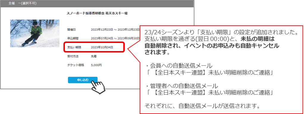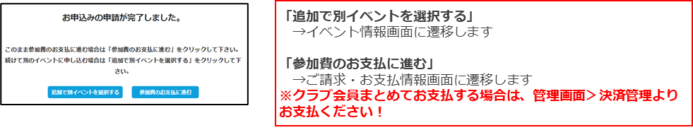 ◇代理で申し込んだイベント参加費を会員個人に支払ってもらいたい場合⇒申込処理完了後、会員に