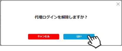 ▼「はい」をクリックすると、代理ログインが解除されます。