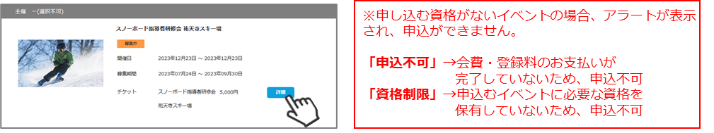 本手順は、会員個人に代わってクラブ管理者がイベント申込を行います。「会員個人がマイページで申込できない」という場合にご活用ください。