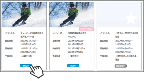 ⑤イベントの一覧が表示されるため、参加する検定会・研修会をクリックしてください。