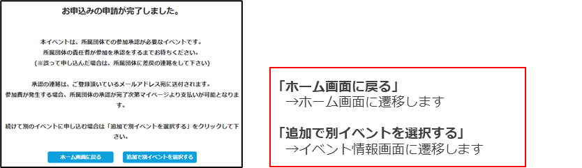⑧-2【参加承認が必要な(要承認)イベント】お申込の申請が完了します。