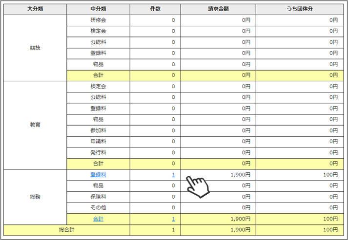 集計表が表示されます。それぞれの明細を確認することが可能です。