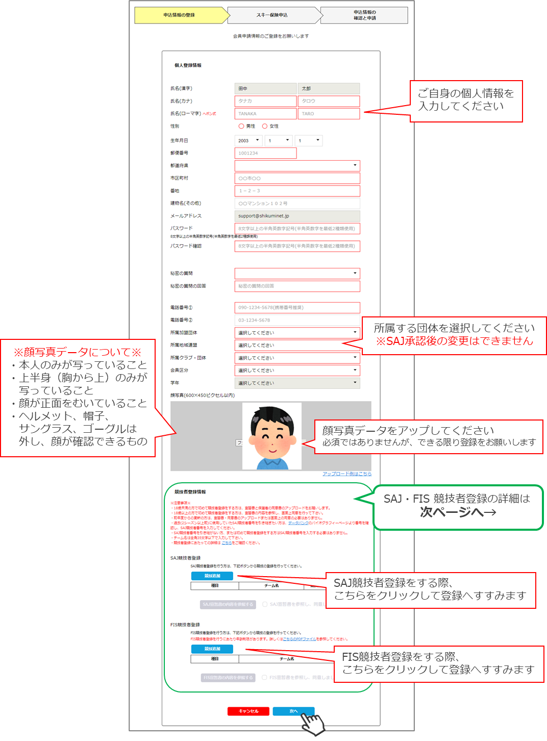 ※前年度にSAJ会員登録した方は、会員登録があります。会員ログインからマイページにログインし、更新申請を行ってください。