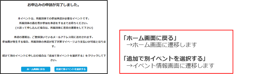 ⑤-2【参加承認が必要な(要承認)イベント】お申込の申請が完了します。